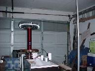These are a couple shots of my 4" coil and a dead flourescent bulb setup that I use for demonstrations.