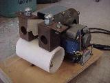 These are some shots of my single gap spark gap. I have 2 Tellurium copper blocks each holding a 3/16" 2% Lanthanated Tungsten electrode. Spacing is presently .3125". The quenching is provided by a squirrel cage fan from a microwave oven.