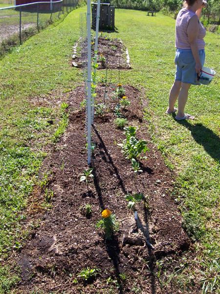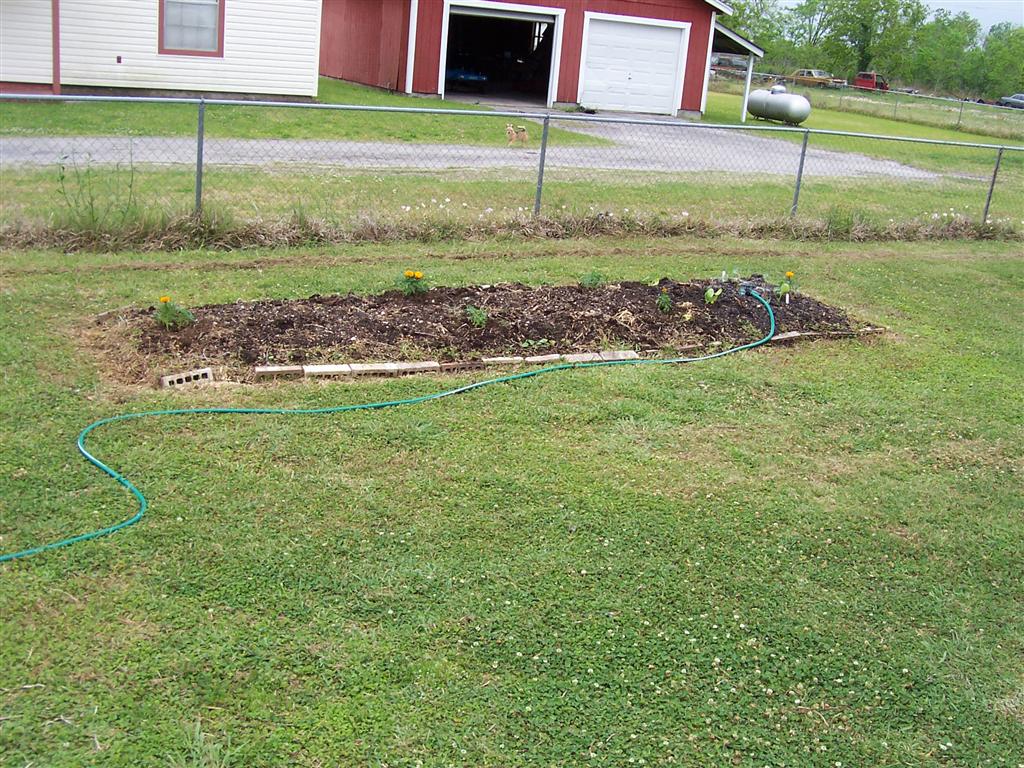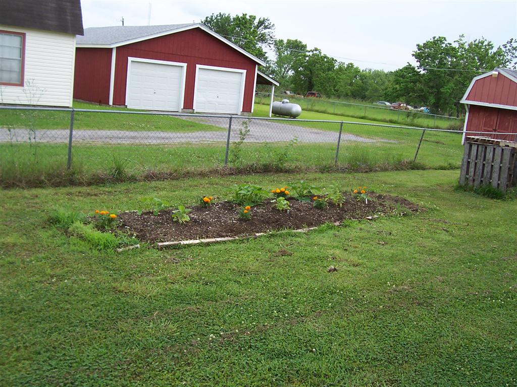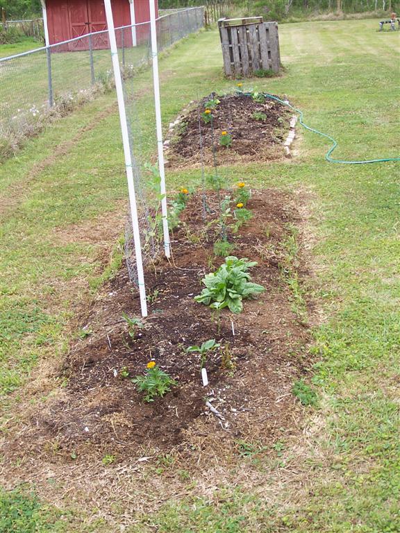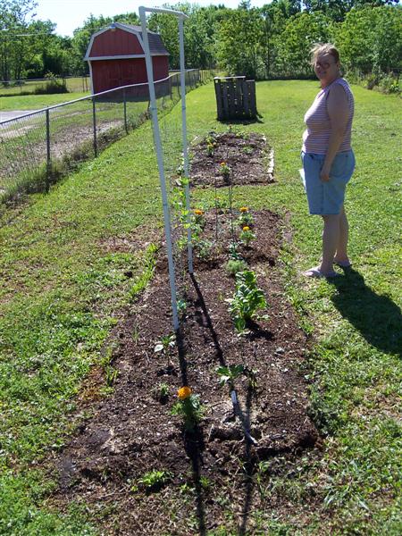 This year besides for expanding the garden, we also tried to get it in earlier. Did you know that "last frost" is not a set date. Our first planting was lost to a late frost. Our second planting, the pictures from 4/02, show the peppers, eggplant and squash that we lost. Then we got a last, last frost......hopefully. This year we've expanded to two approx. 4 feet by 16 feet plots.