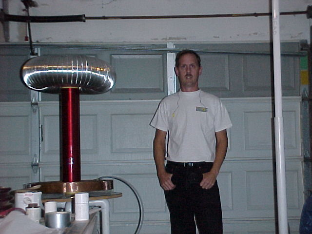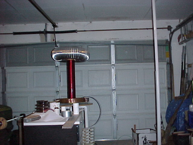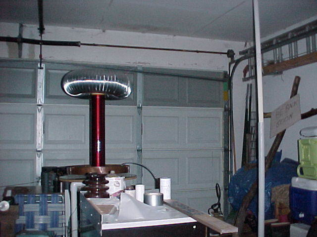 These are a couple shots of my 4" coil and a dead flourescent bulb setup that I use for demonstrations.