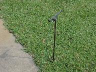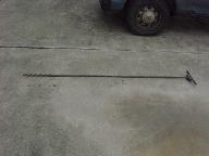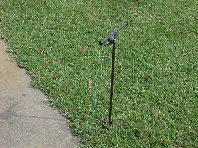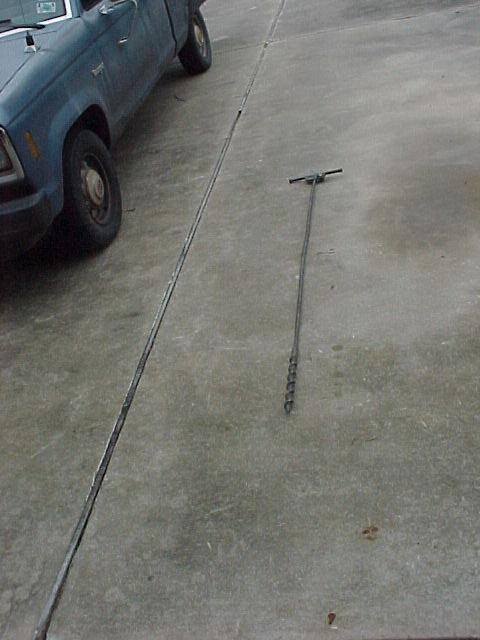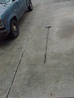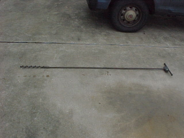 This is my RF ground. It is a T-handle ground device that many utility companies use to provide a solid temporary ground. It's about 6' long with brass handle T-handle at one end and a brass auger style bit at the other end. The shaft appears to be copper plated steel.
