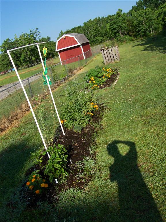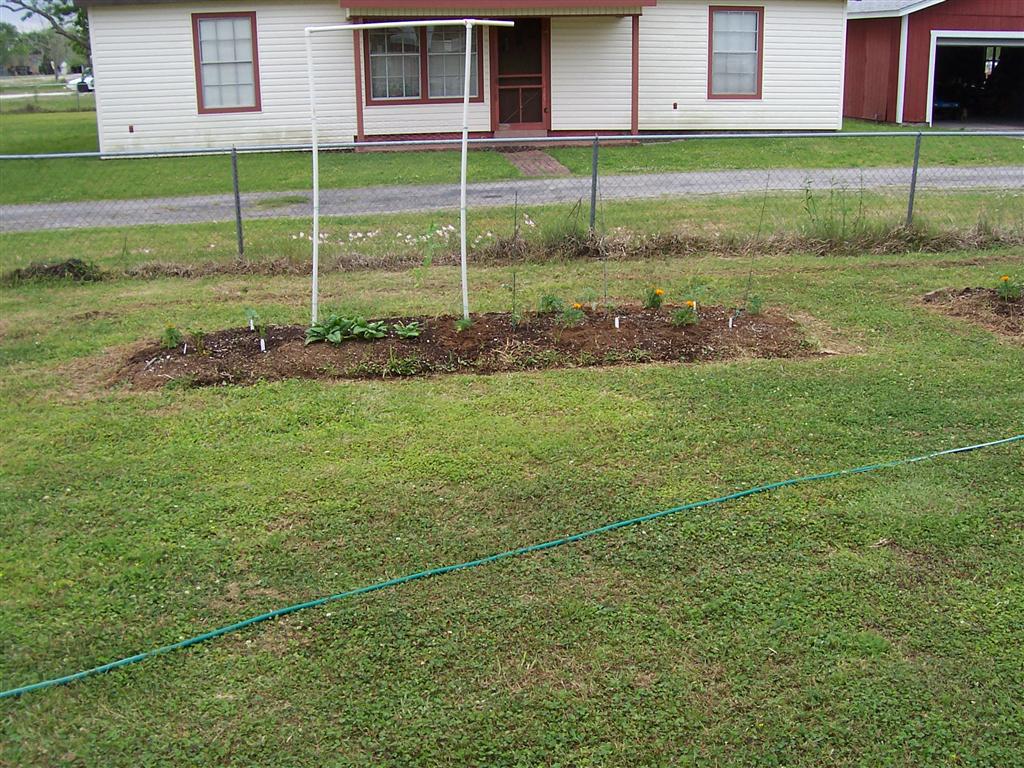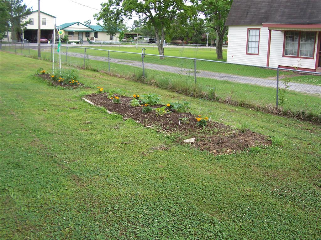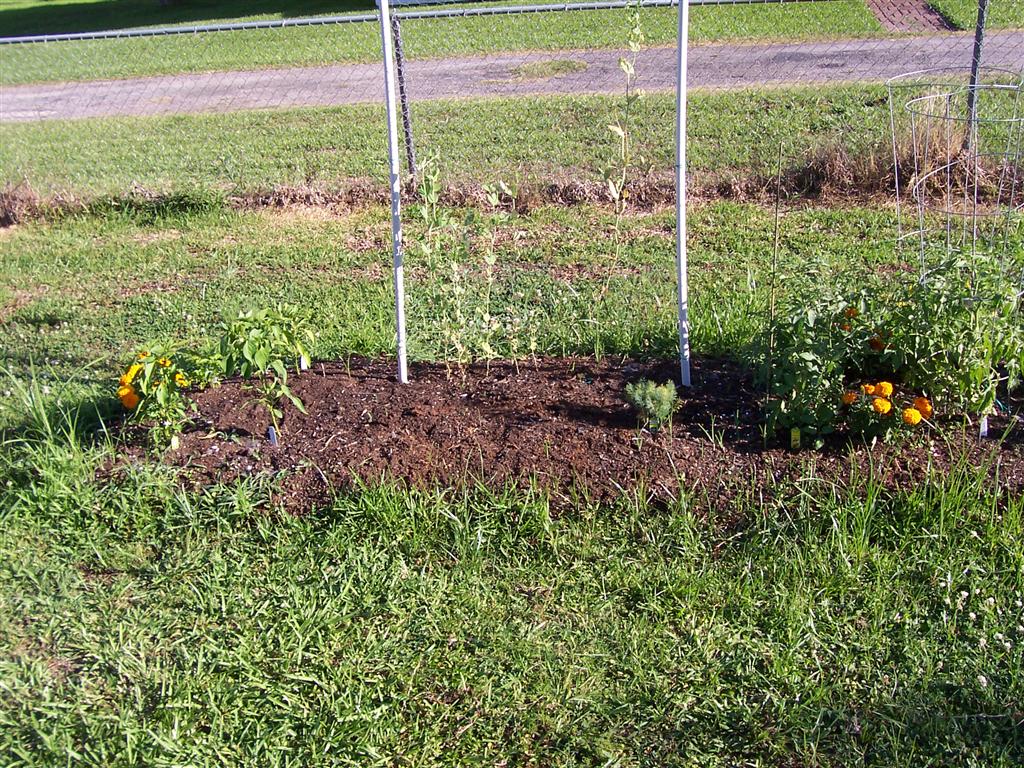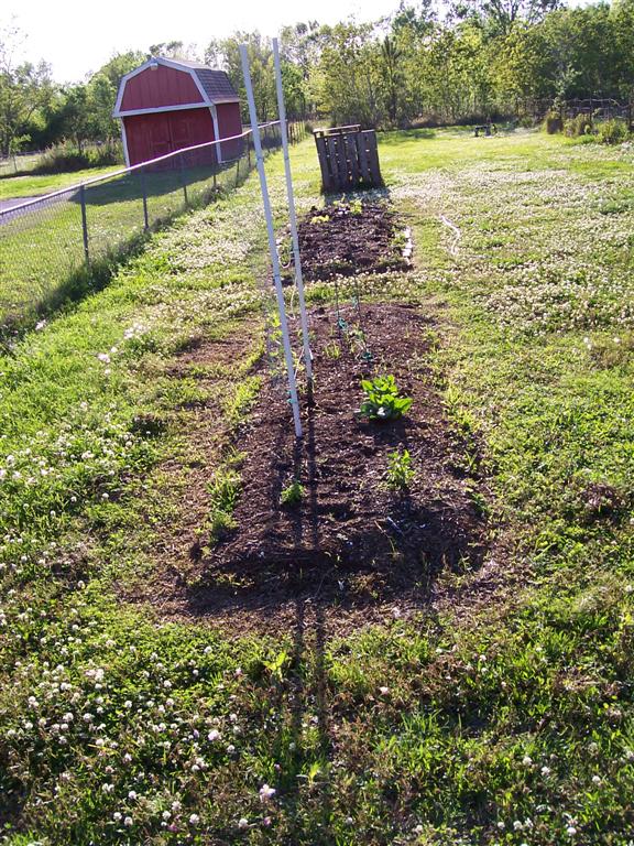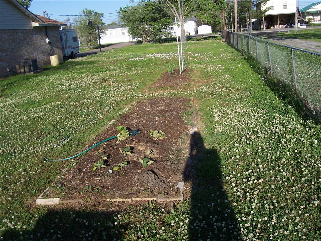 This year besides for expanding the garden, we also tried to get it in earlier. Did you know that "last frost" is not a set date. Our first planting was lost to a late frost. Our second planting, the pictures from 4/02, show the peppers, eggplant and squash that we lost. Then we got a last, last frost......hopefully. This year we've expanded to two approx. 4 feet by 16 feet plots.