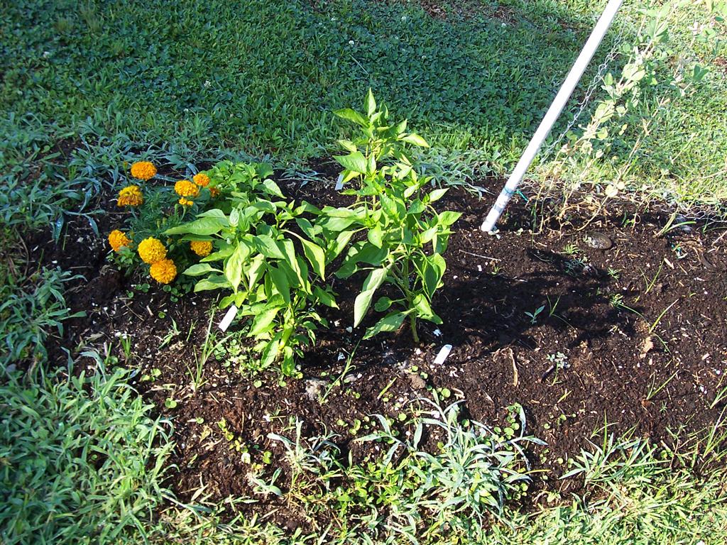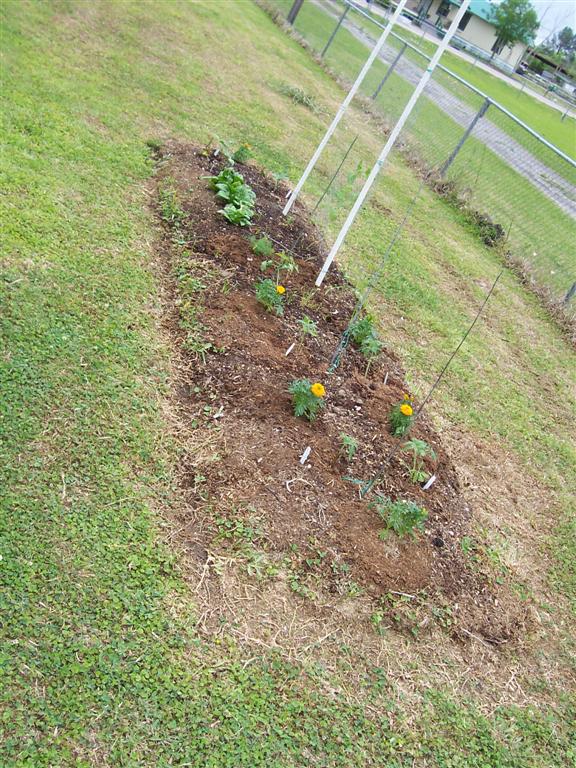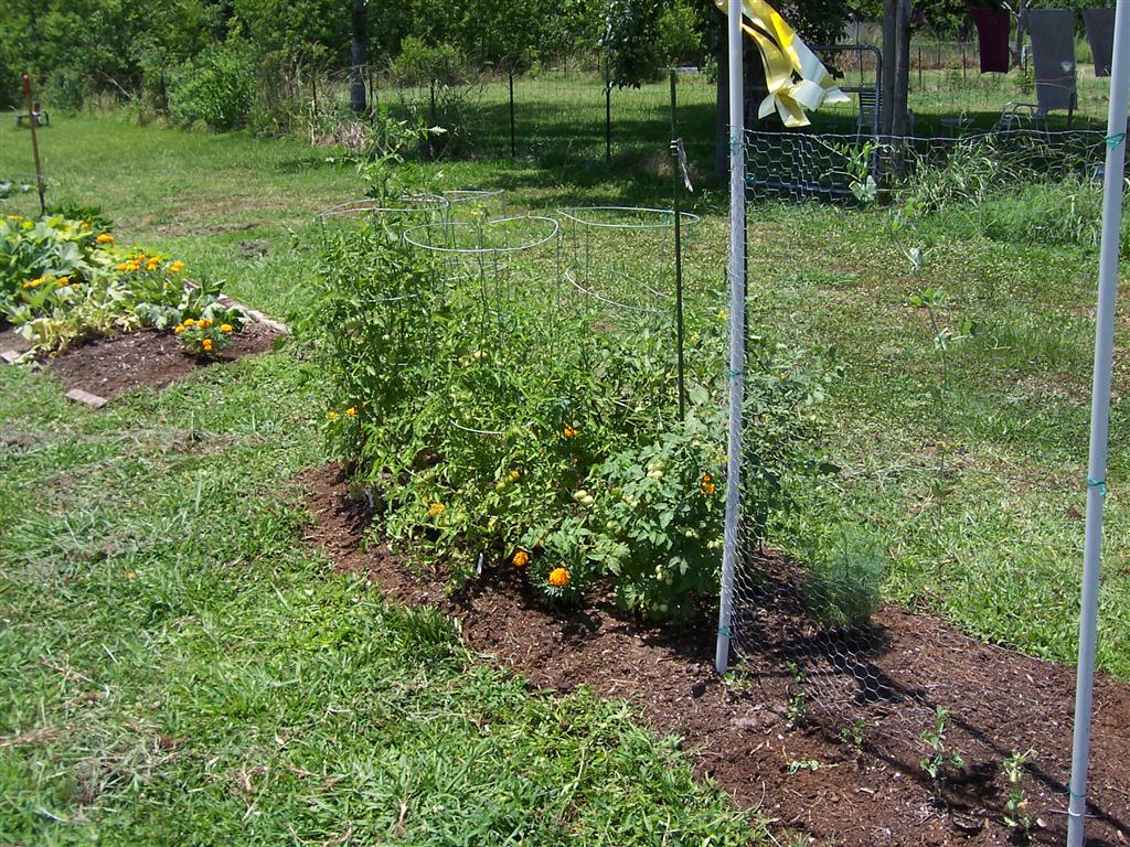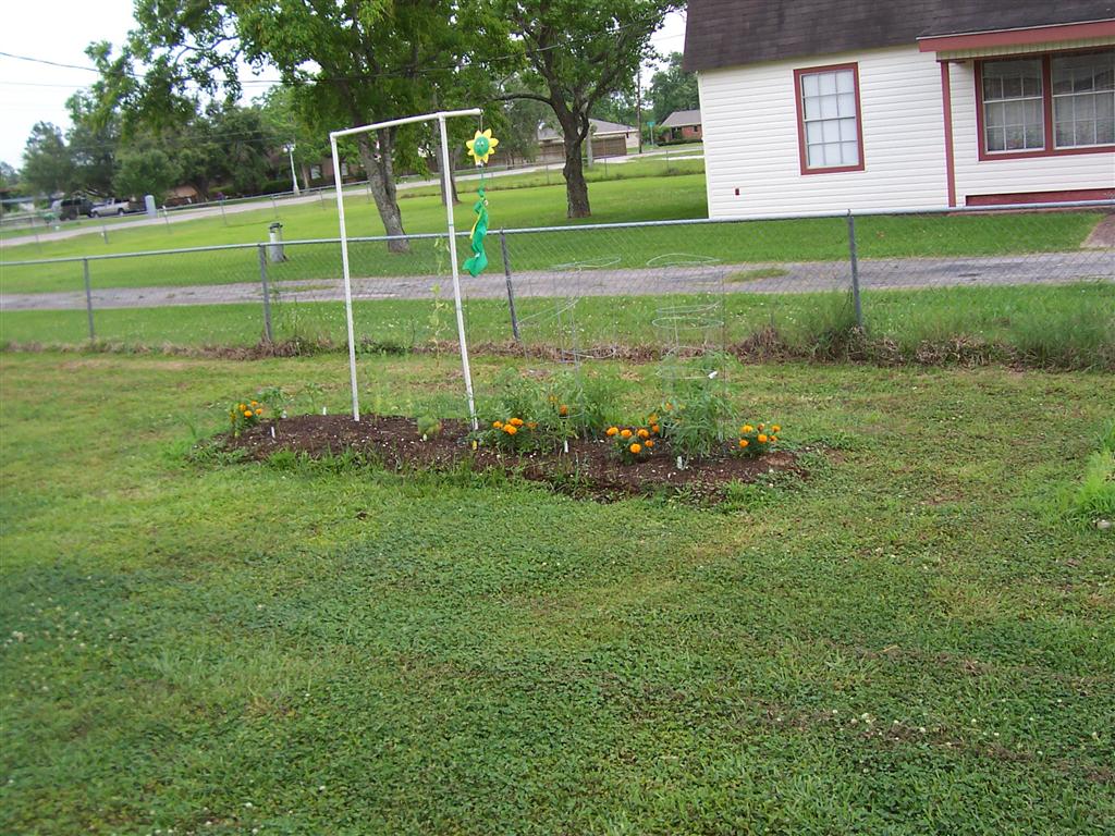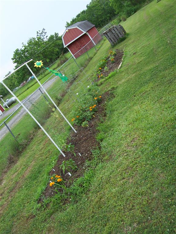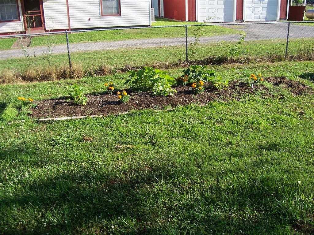 This year besides for expanding the garden, we also tried to get it in earlier. Did you know that "last frost" is not a set date. Our first planting was lost to a late frost. Our second planting, the pictures from 4/02, show the peppers, eggplant and squash that we lost. Then we got a last, last frost......hopefully. This year we've expanded to two approx. 4 feet by 16 feet plots.